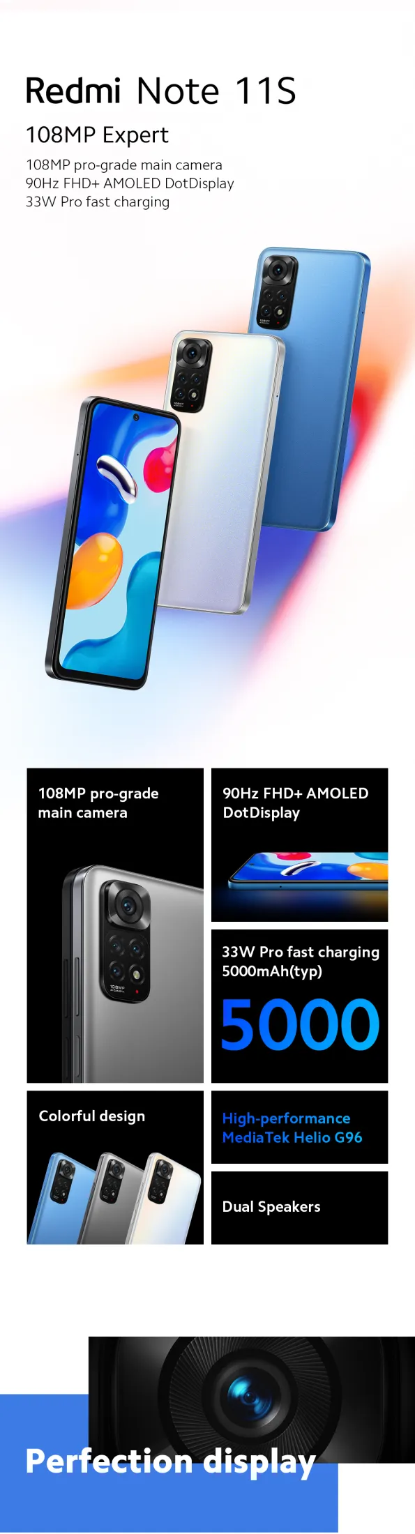 Xiaomi Redmi Note 11S ROM 128GB+RAM 6GB/Phiên bản LTE/Bảo hành 1 năm của Xiaomi cục bộ/Phiên bản toàn cầu (Miễn phí: Kính cường lực+Vỏ sau)
