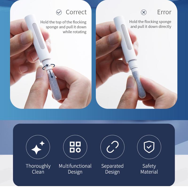 Same as the pen tip, the cleaner pen protects the cleaning surface with a round-headed tip, getting deep into the hard-to-reach dead corners and scraping up the stubborn dirt effortlessly. Make sure an all-round cleaning and leave no dirt to survive.