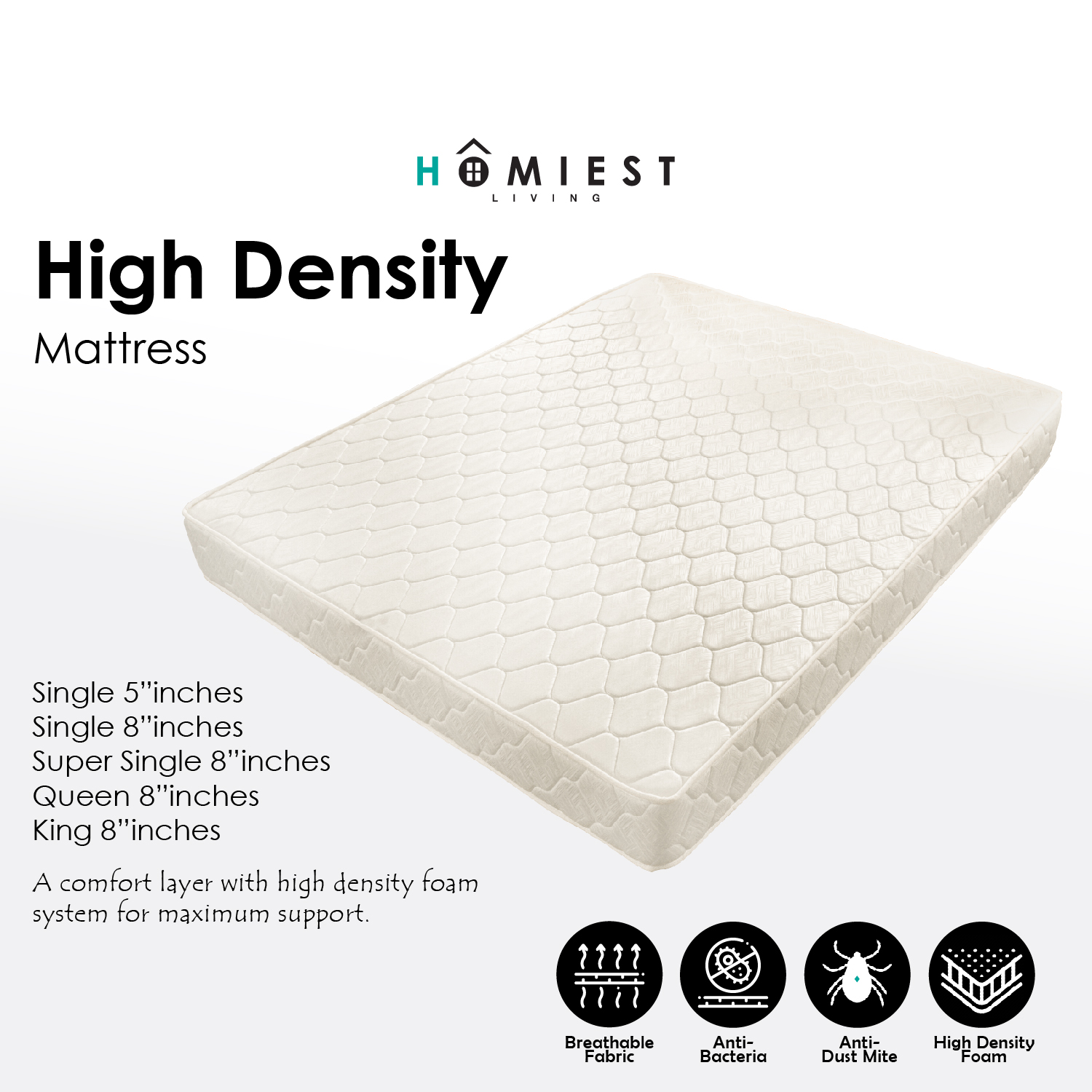8" Super Single : 105W x 191L x 20H (cm)
