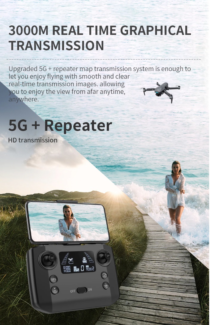 Item No: KF101 MAX Color :Dark Grey Frequency :2.4G (Remote Control) & 5G (Mobile Phone) Drone Battery :11.1V 2500mAh Control Distance : 3KM For KF101 MAX Wifi Image Transmission Distance : 3KM Flight Time : About 25 min Charging Time : About 6 hours USB Charging : 5V/2A Drone Weight : 613g (Needs drone registration in Singapore) Remote Control Battery : 3.7V 1000mAh Transmitter Charging Time : About 60min Transmitter Operating Time : About 10 hours Camera : 3 -Axis Electronic Stabilization Gimbal EIS electronic image stabilization Camera Camera Lens : 120° Photo Resolution (APP) : 3840*2160 P Video Resolution (APP) : 1280*720 P Photo Resolution (SD Card) : 2560*1440 P Video Resolution (SD Card) : 2560*1440 P Frame Rate : 30fps Photo Format : JPG Video Format : MP4 or AVI Adjustable Angle :90° Gesture Shooting : 1-3 M GPS Follow Me : 30 M+ SD Card Supports 32G-128G(Not Included) Mobile Device System Version : iOS 8.0 or later / Android 4.4.4 or later